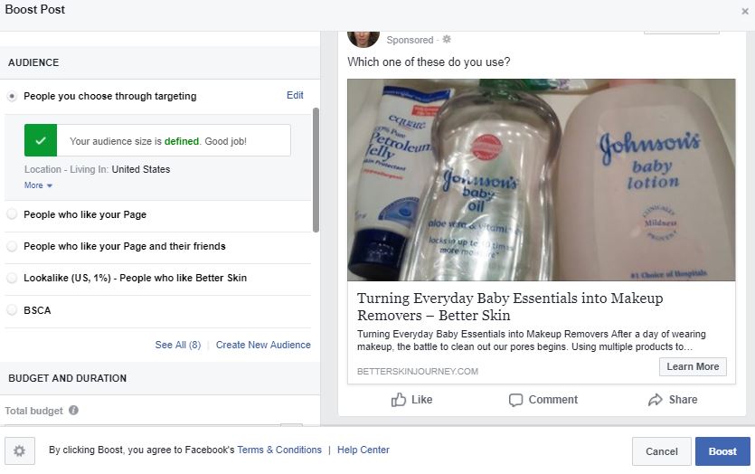 5. Boosted Post – Works great if you notice a lot of people reacting to your post.
